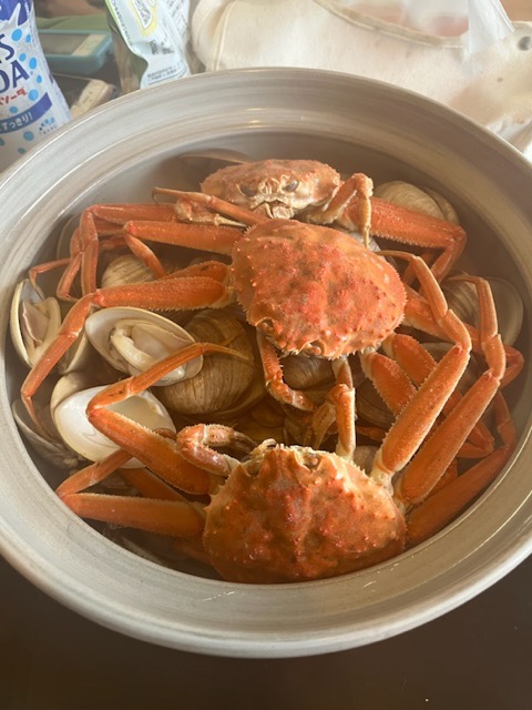 土鍋いっぱいにアサリとハマグリと蟹🦀を入れて酒蒸し🤗